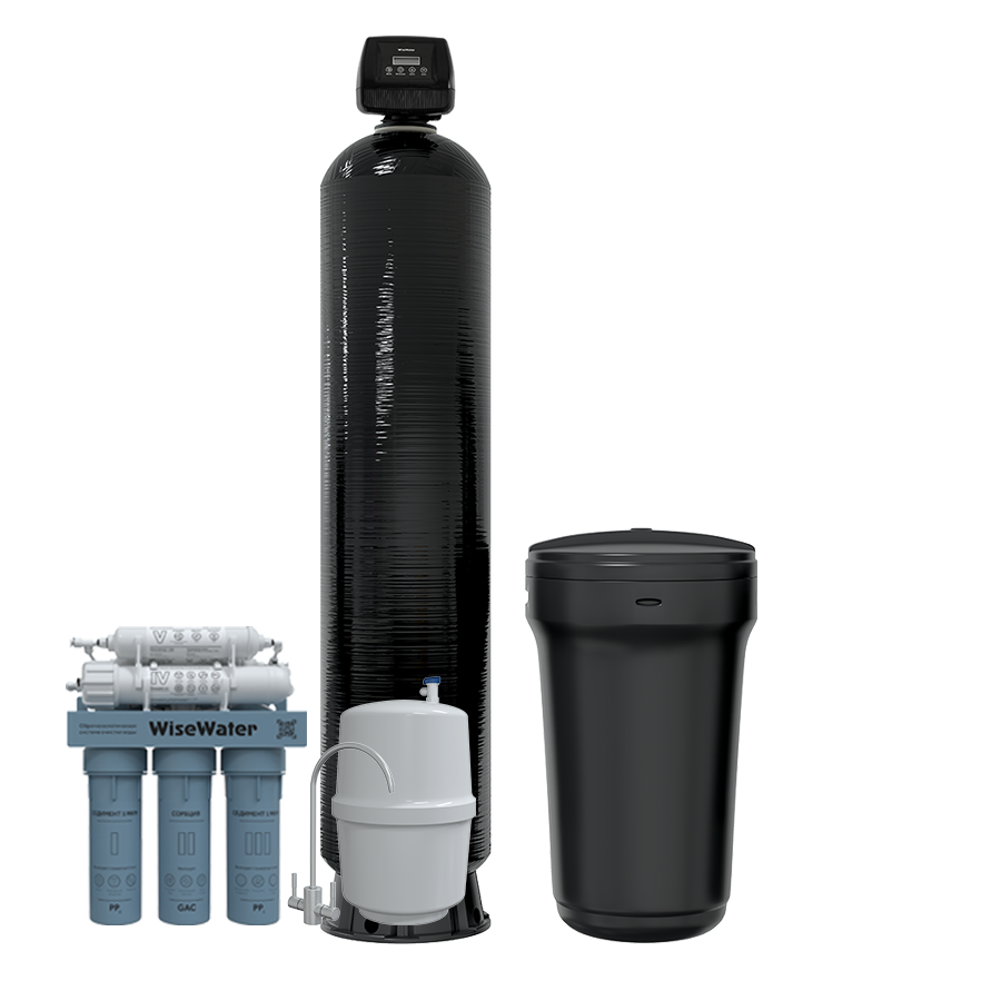 В комплектацию входит обратноосмотическая система WiseWater Osmos Mineral и накопительный бак мембранного типа, что делает Фильтр умягчитель Can85 Mineral+ идеальным решением для получения кристально чистой и полезной воды в вашем доме.