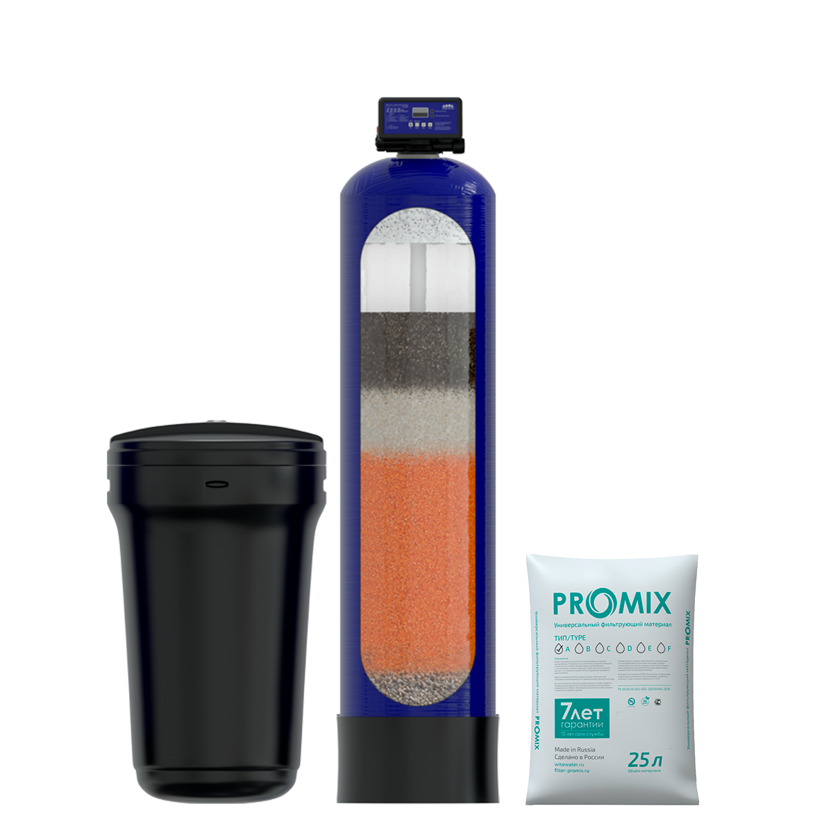 Благодаря уникальному фильтрующему материалу ProMix, состоящему из пяти различных фильтрующих материалов, система SiberianAqua1354Q1ProMix обеспечивает высокоэффективное удаление загрязнителей. Комплектация включает в себя клапан управления, баллон с распределительной системой, блок питания и солевой бак, что делает установку полностью готовой к использованию.